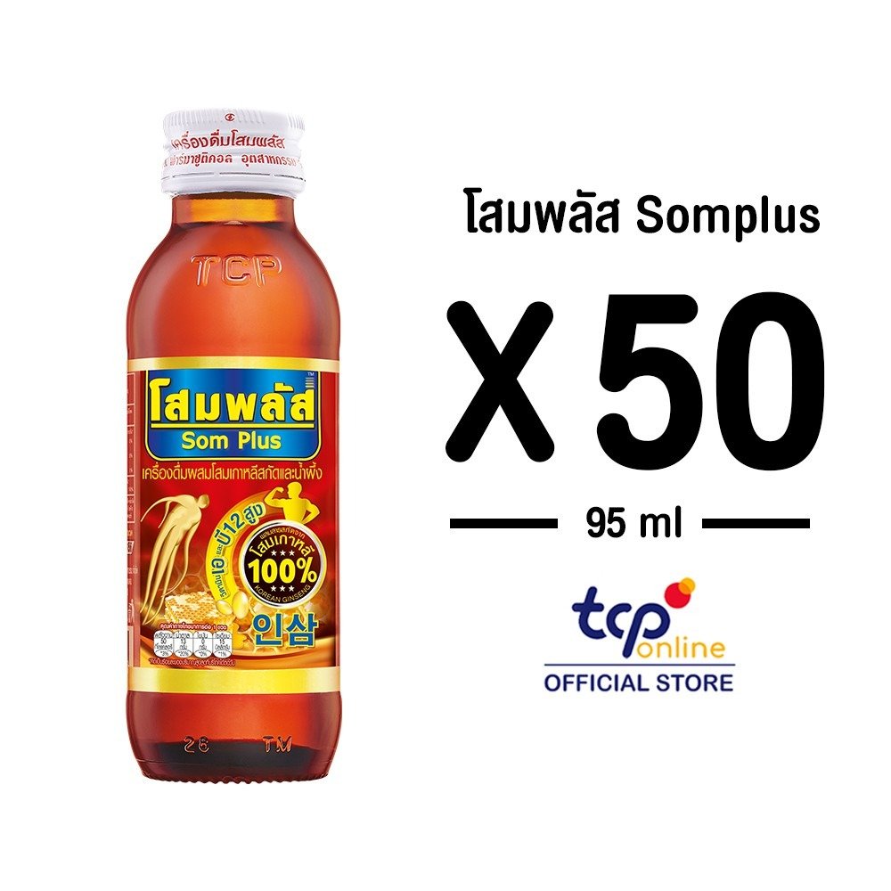 โสมพลัส 95 มล. 50 ขวด ยกลัง SOMPLUS 95 ml. Pack 50 (TCP) โสมเกาหลีแท้ 100% และน้ำผึ้ง เครื่องดื่มให้พลังงาน บำรุงร่างกาย วิตามินเอ วิตามินบี 12 , Korean Ginseng , Energy Drink