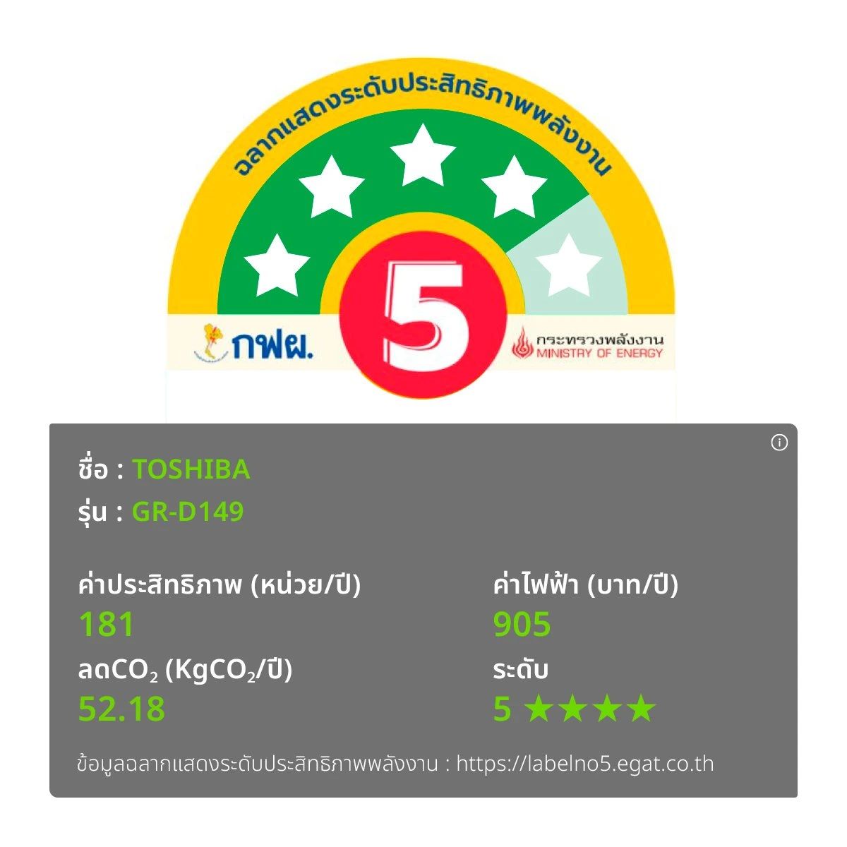 • ฉลากประหยัดพลังงานเบอร์ 5